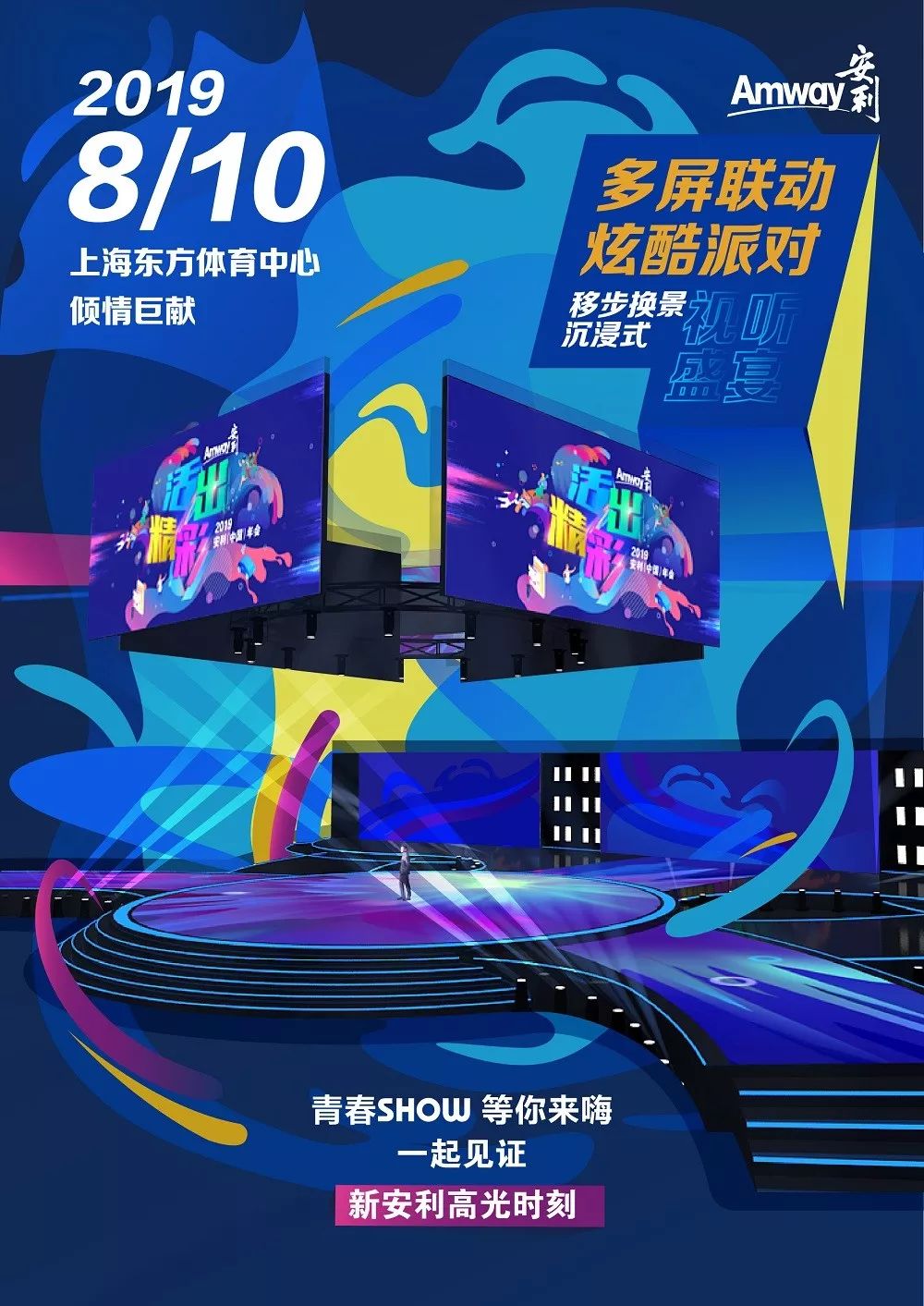 8月10日下午,安利(中国)2019年会盛典“活出精彩”将在上海东方体育中心隆重举办。360°沉浸式视听盛宴,最IN多屏联动移步换景……满满的高科技元素和梦幻舞美,分分钟美哭你,看到这里伙伴们是不是已经心潮澎湃了?
