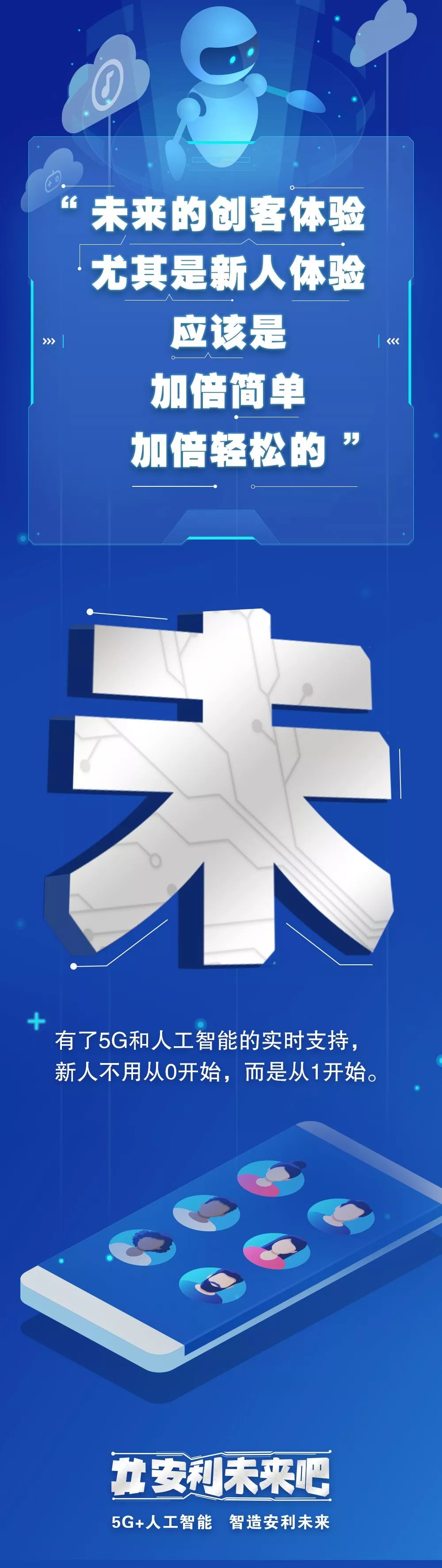 5G和人工智能不仅带来高效的传播速度,更能更好地协助万物互联,这与安利助人自助的核心价值观不谋而合。颜总也借此大胆热烈地畅想了未来安利连接客户的新型模式,“未来的创客体验,尤其是新人体验,应该是加倍简单、加倍轻松的。”当未来所有的数据都打通了,人工智能可以帮助创客找到潜在顾客在哪儿,并用可知可感、身临其境的好体验,帮助创客用最短的时间、最好的办法打动顾客。 在颜总看来,人工智能可以让一个新人在第一次面对客户的时候如同拥有一整个专家团队,“有了5G和人工智能的帮助,新人不用从0开始,而是从1开始,领导人也不用从基础开始带新人,大家的工作都可以更加高效、轻松。”